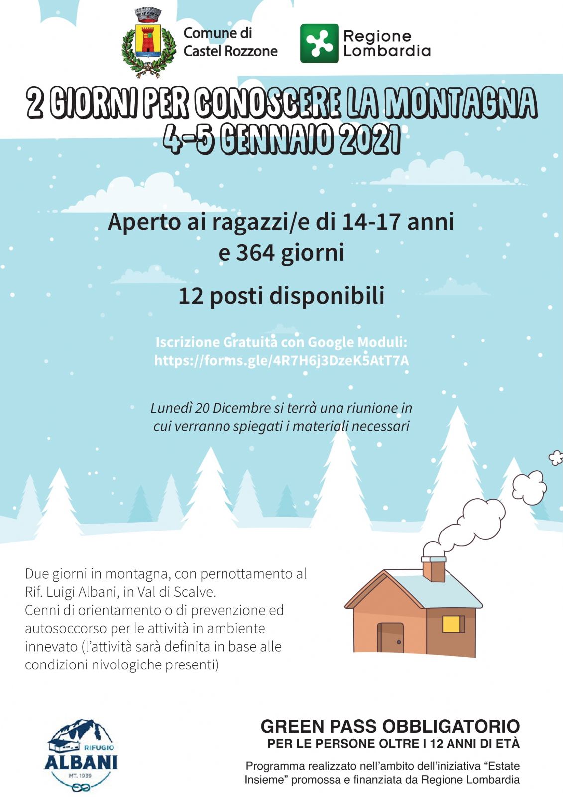🏔🏔Due giorni in montagna, il 4 e 5 Gennaio 2022, con pernottamento al Rifugio Luigi Albani in Val di Scale.