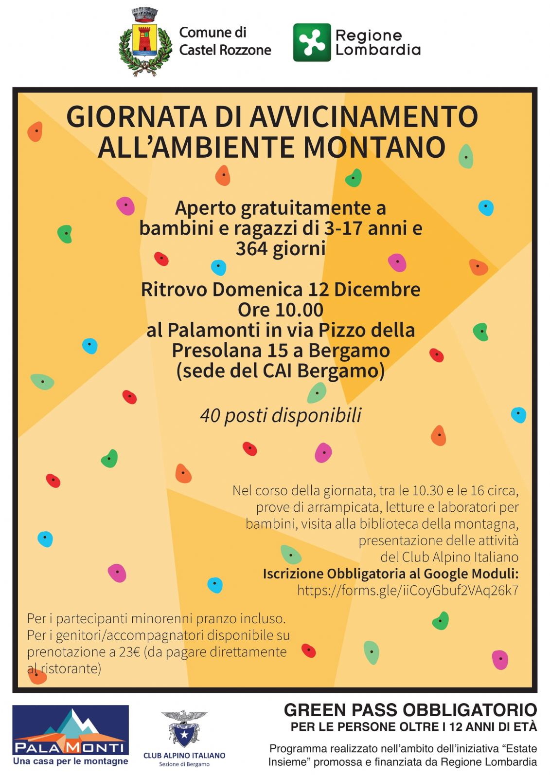 Ritrovo Domenica 12 Dicembre ore 10.00 al Palamonti in via Pizzo della Presolana 15 a Bergamo