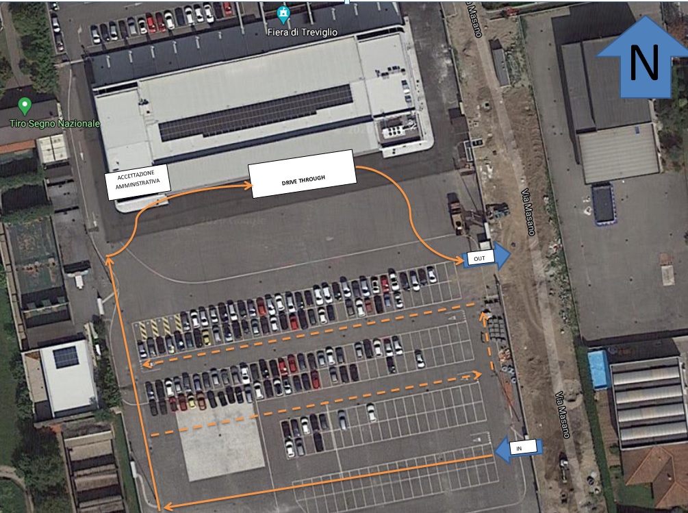 Grazie alla preziosa collaborazione del Comune di Treviglio, da lunedì 9 novembre tutti i tamponi naso-faringei drive through verranno eseguiti nel piazzale retrostante la TreviglioFiera seguendo un percorso già definito, per non interferire con la viabilità quotidiana.