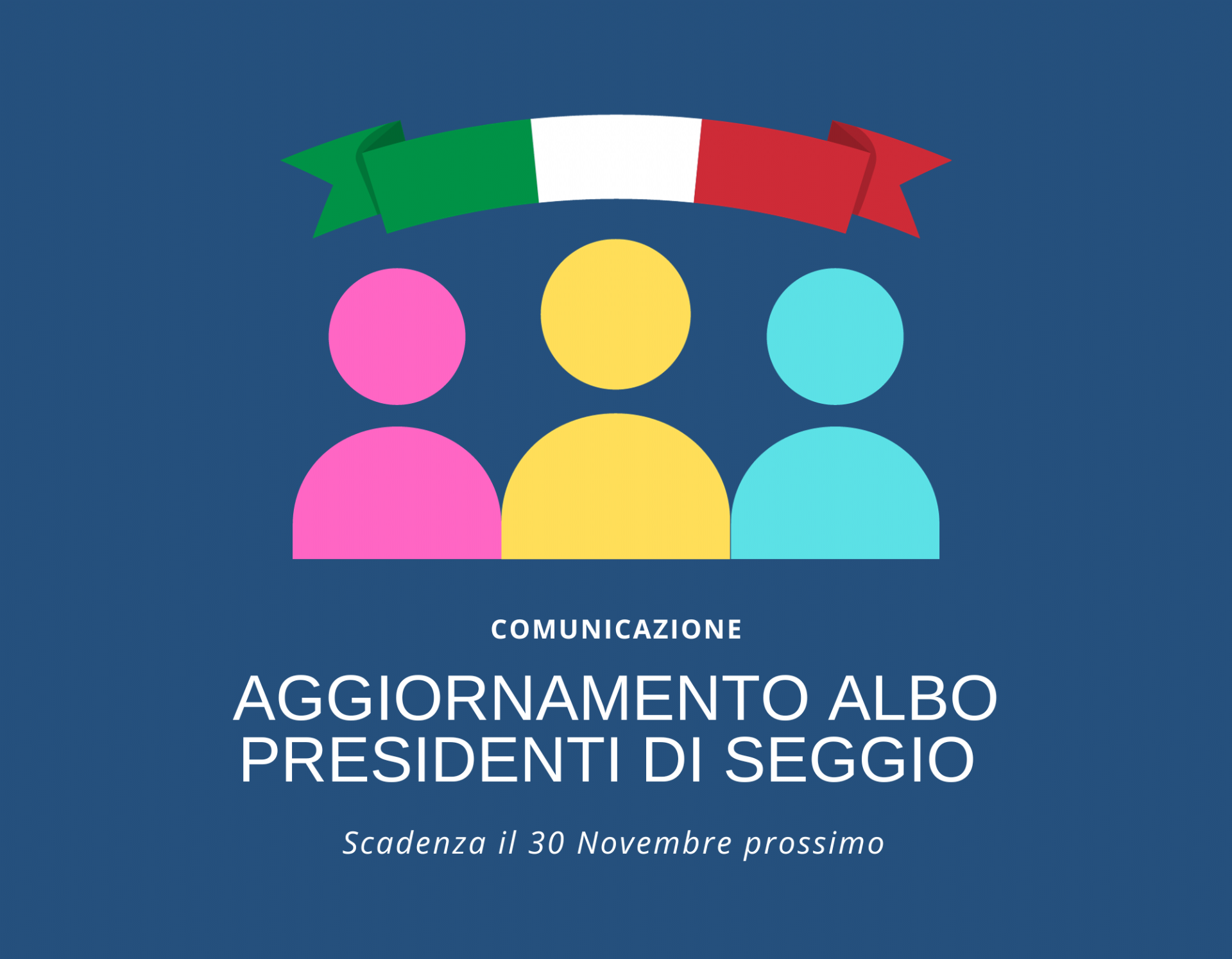 Si invitano gli elettori disposti ad essere inseriti nell'albo unico delle persone idonee all'Ufficio di Scrutatore di seggio elettorale e Presidenti di Seggio a presentare la propria domanda di candidatura presso l'Ufficio Elettorale.