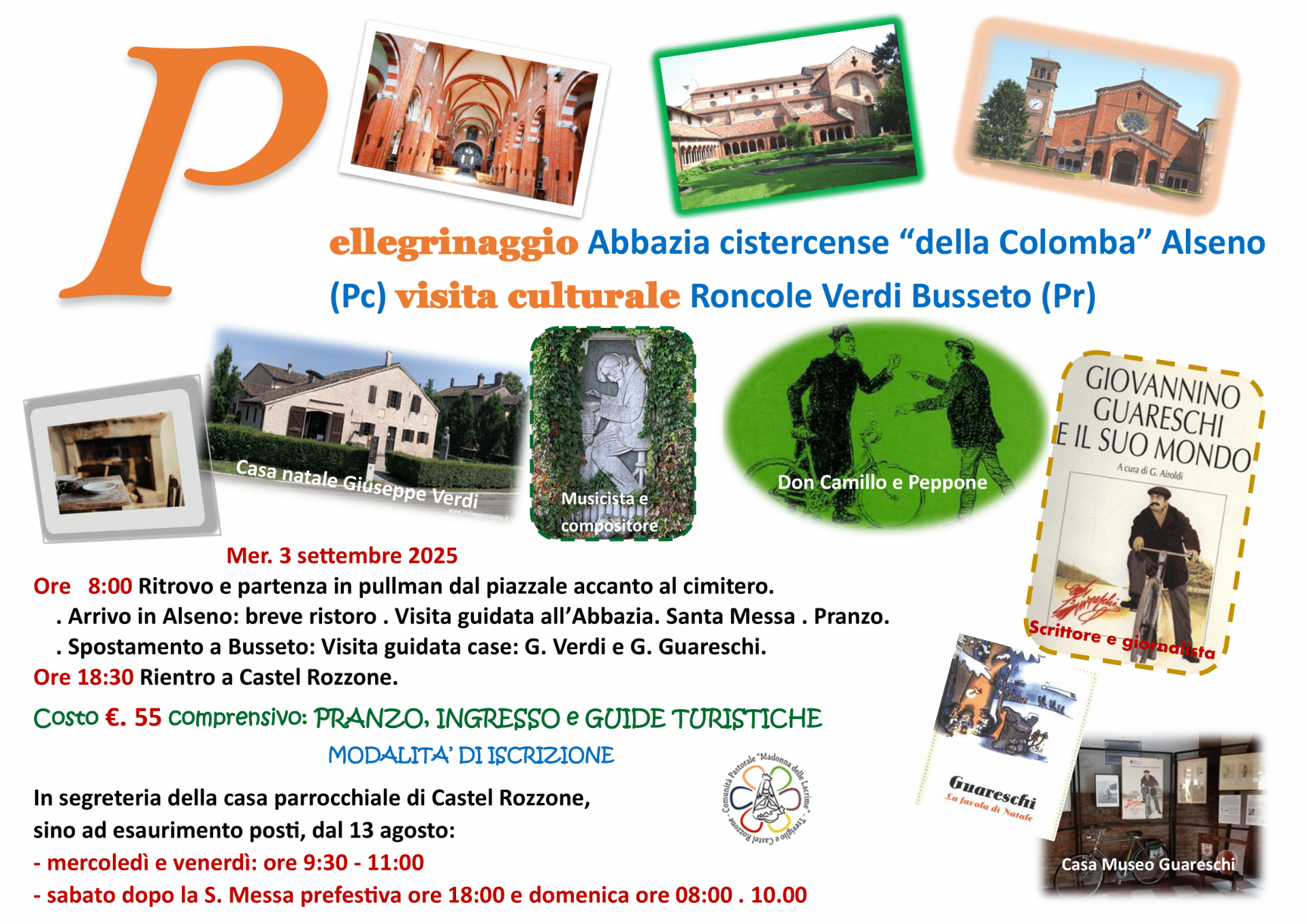 Presso la segreteria della casa parrocchiale di Castel Rozzone, sino ad esaurimento posti, a partire dal 13 agosto.