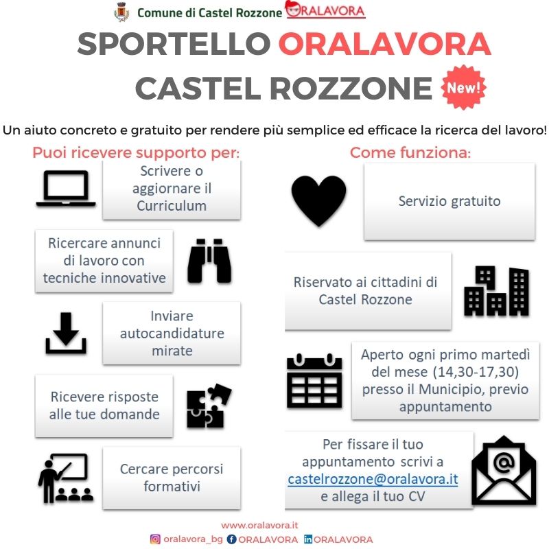 lo Sportello Gratuito ORALAVORA riservato ai cittadini di Castel Rozzone é un aiuto concreto per rendere più semplice ed efficace la ricerca di lavoro!
