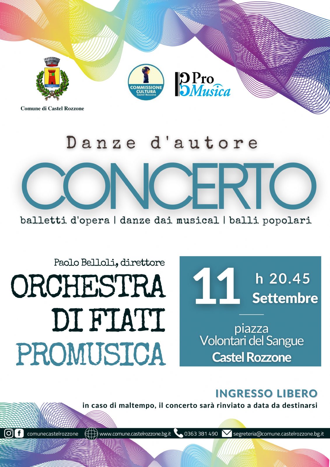Ingresso libero, in caso di maltempo il concerto verrà rinviato a data da destinarsi