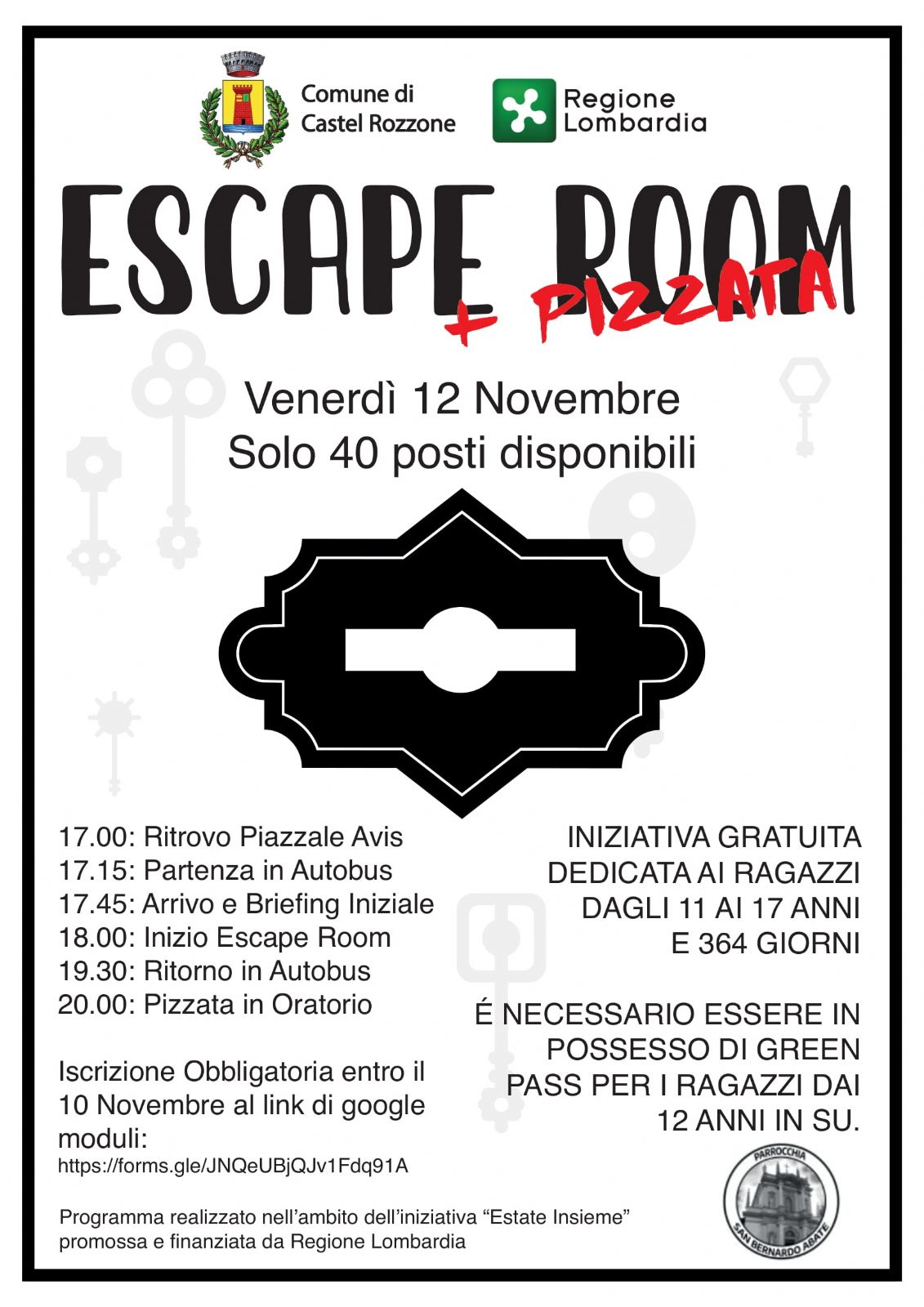 Venerdì 12 Novembre collabora con i tuoi amici per uscire da una stanza in un'ora di tempo!!! A seguire pizzata in oratorio!!