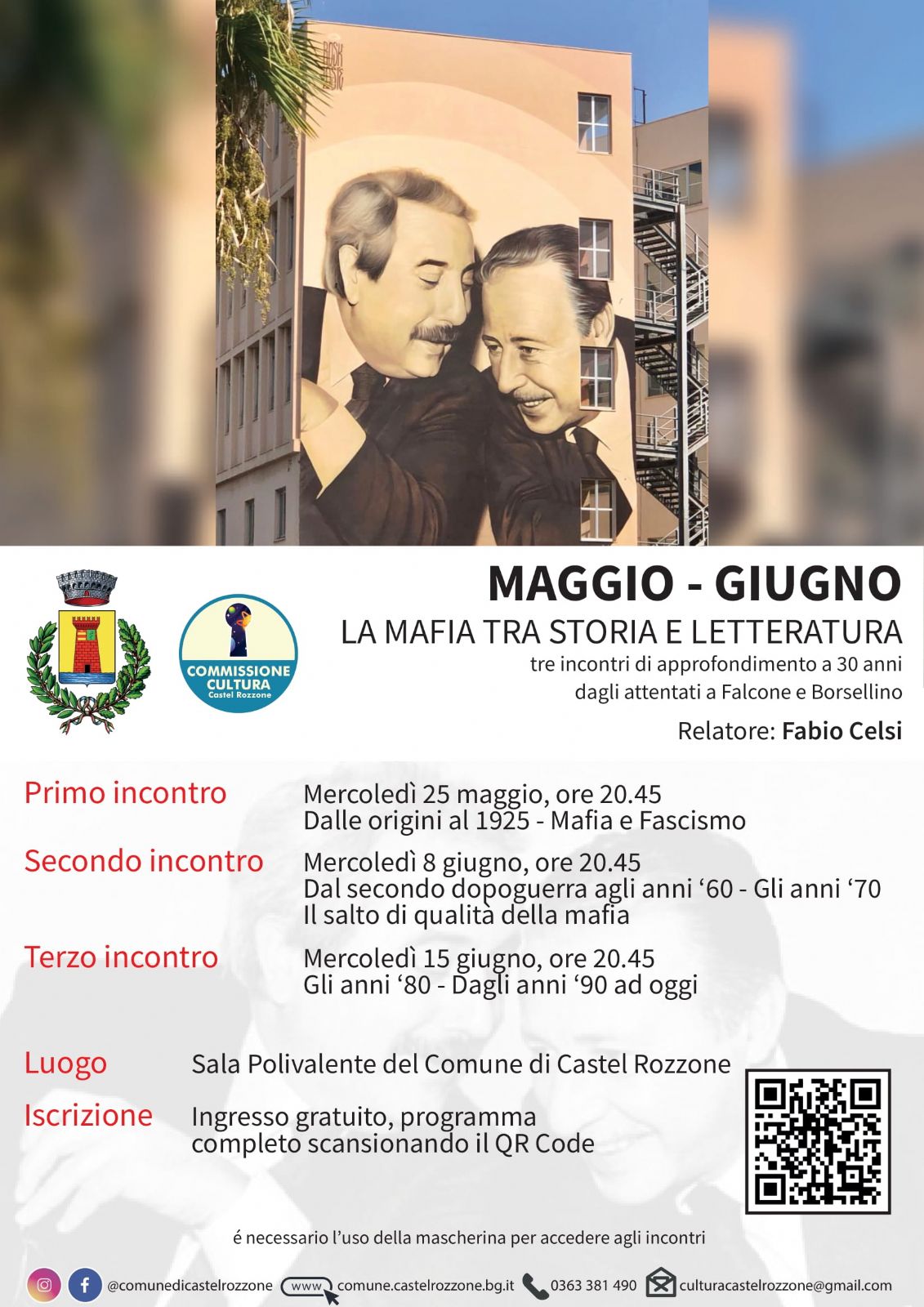 La Commissione cultura organizza, in occasione dei 30 anni dagli attentati a Falcone e Borsellino, ter serate per approfondire il tema della mafia e capire l'evoluzione storica e culturale che ha portato agli eventi del 1992.