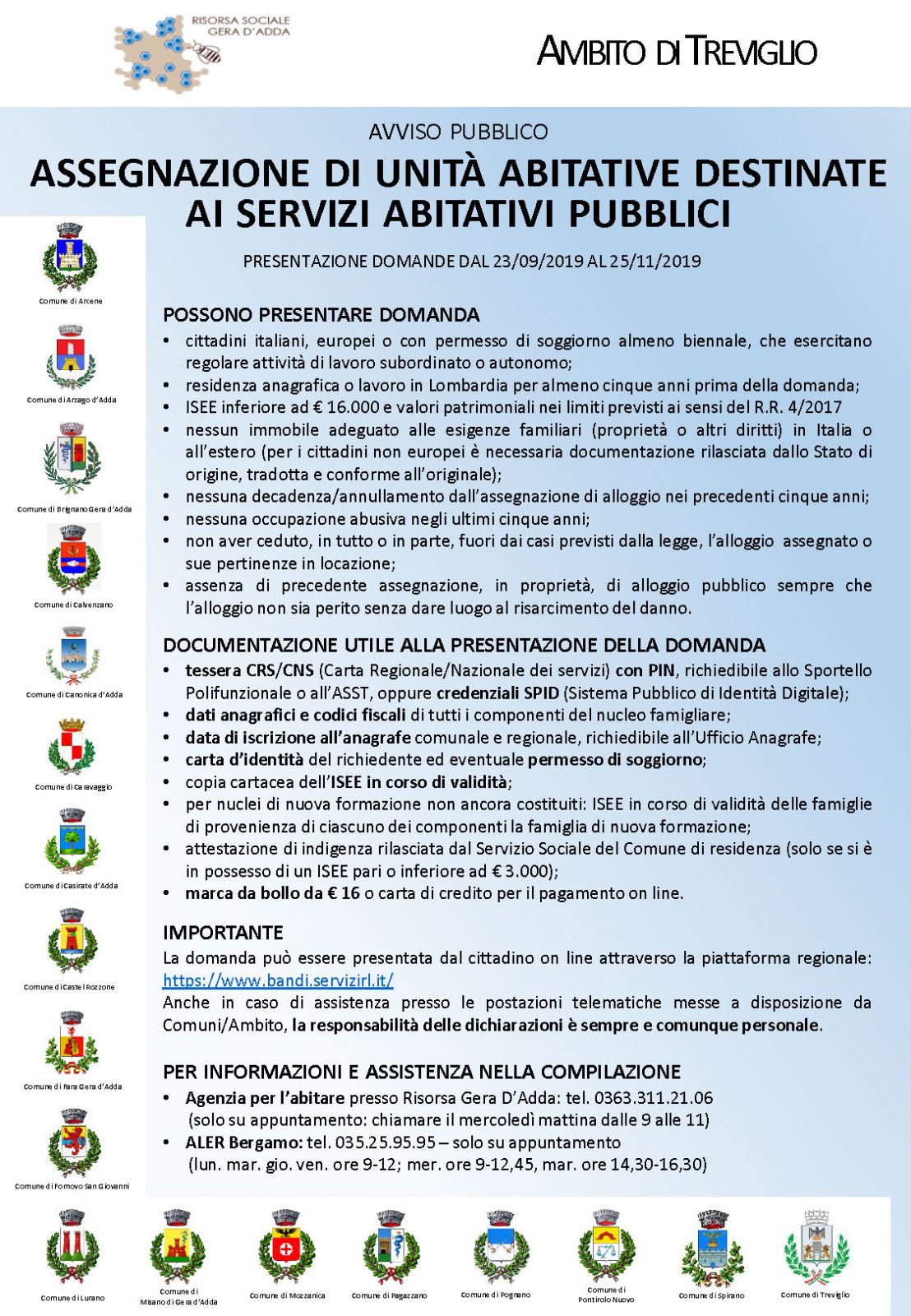 Informiamo la cittadinanza in merito a requisiti e modalità d'accesso