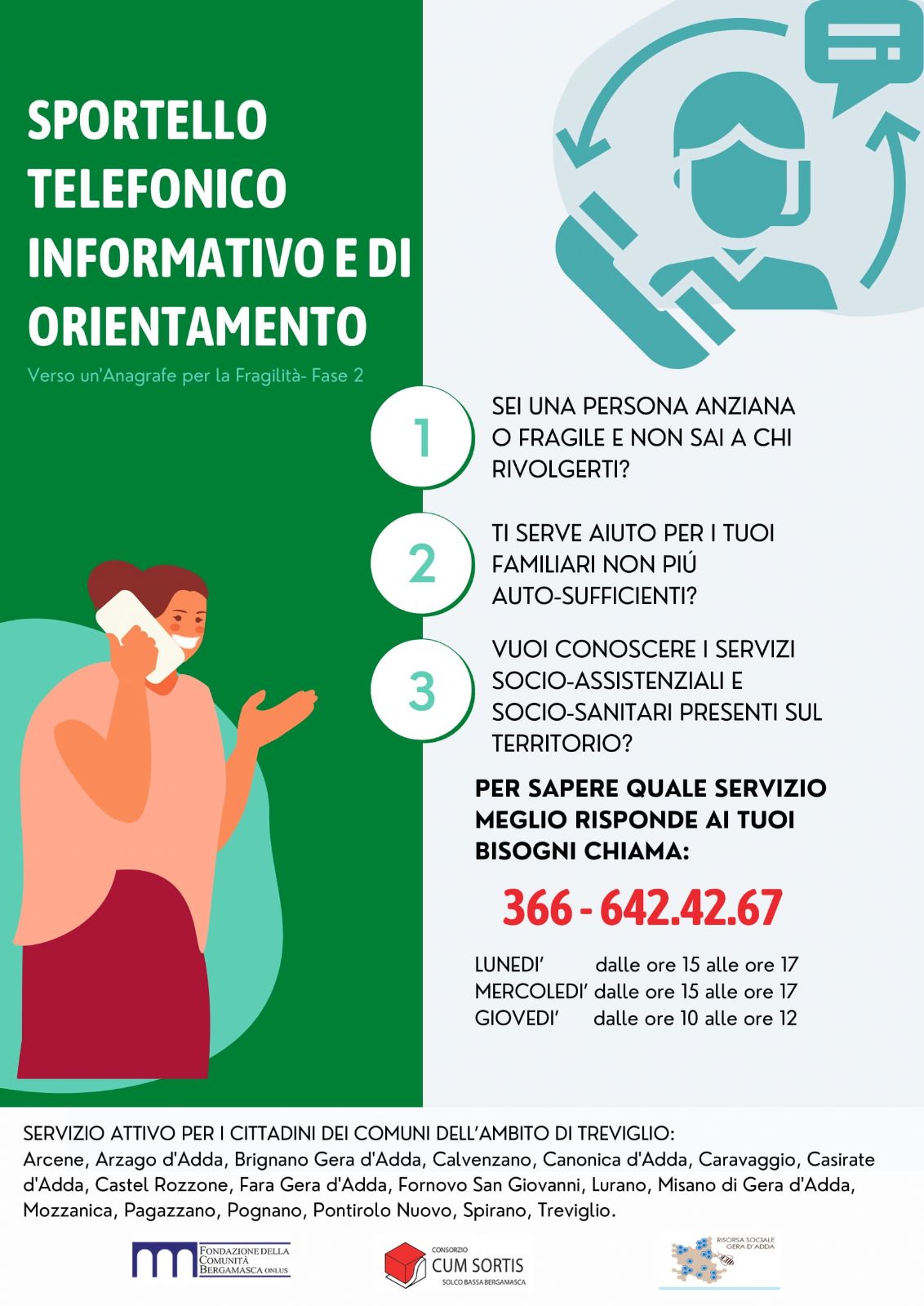 Servizio attivo per i cittadini dei comuni dell’ambito di Treviglio.