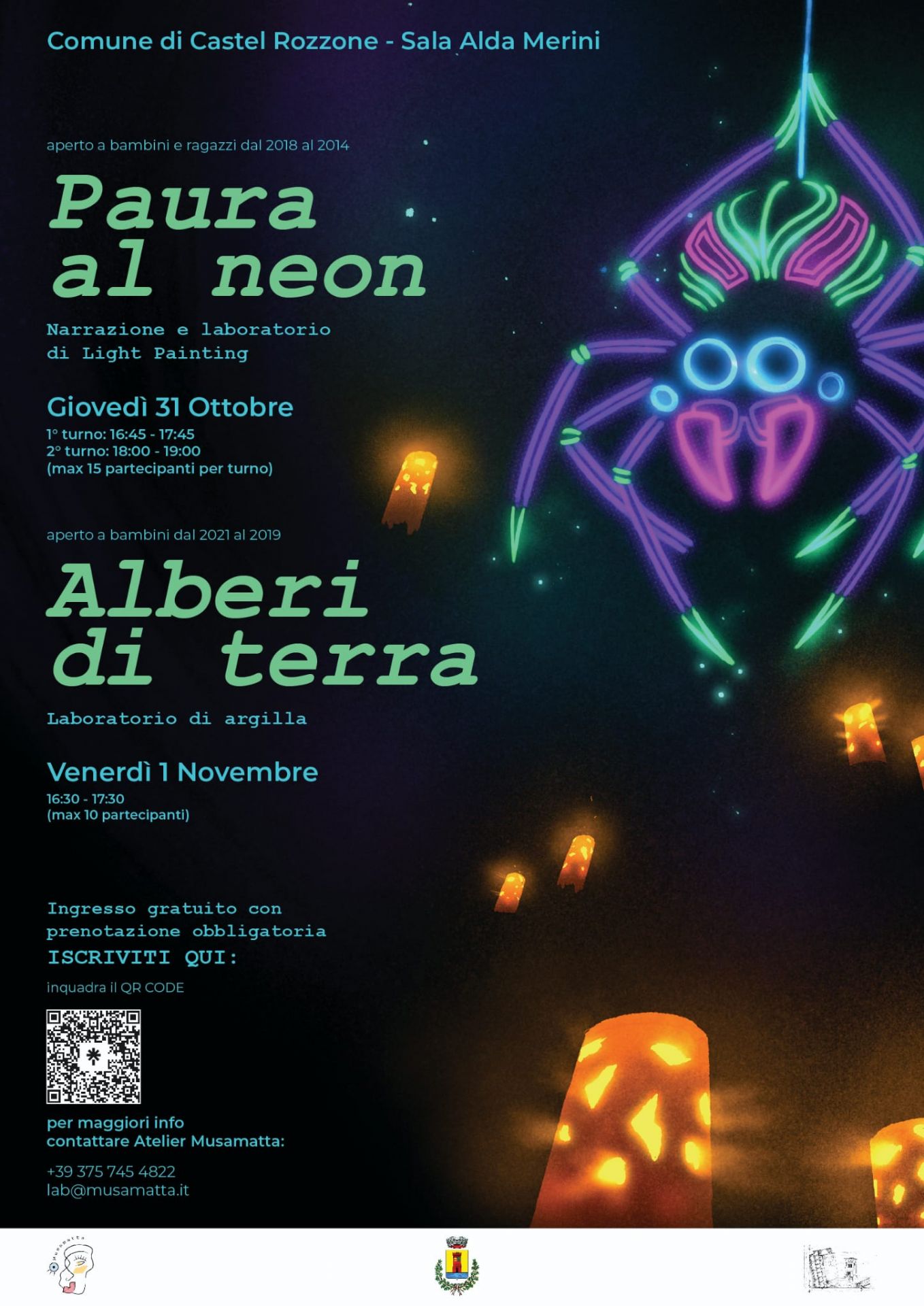 o inquadra il QR code sulla locandina o contatta Atelier Musamatta per maggiori info:
