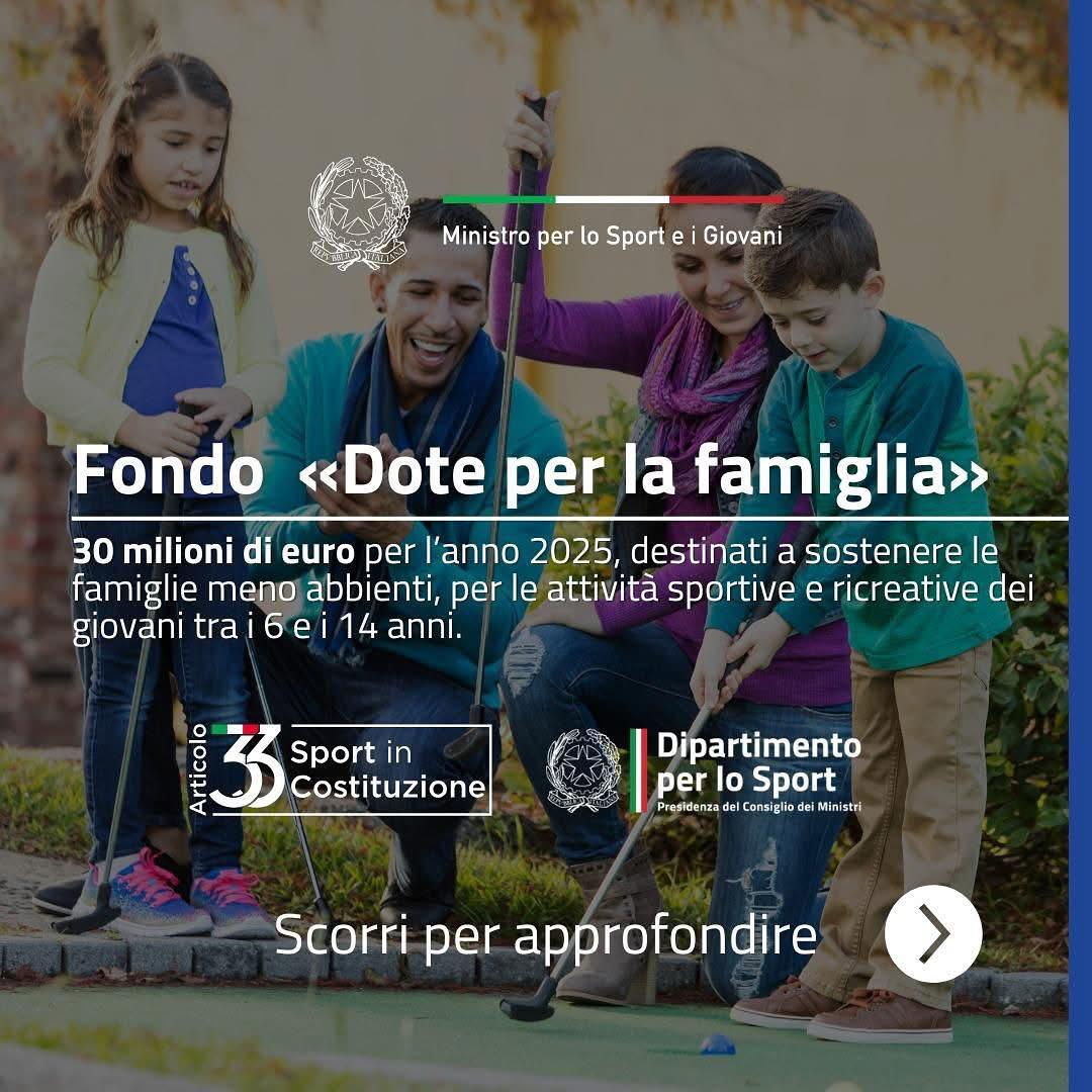 ✍️ La news completa sul sito SportGoverno ➡️ https://www.sport.governo.it/it/bandi-e-avvisi/fondo-dote-famiglia/fondo-dote-famiglia-2025-al-via-la-raccolta-di-adesioni-da-parte-di-asd-ssd-ets-e-onlus-di-ambito-sportivo/