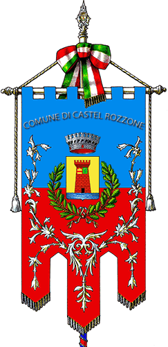Sfondo d’oro con torrione rosso murato di nero e merlato di 6 alla ghibellina. Sotto la merlatura due stemmi: a destra uno d’oro con fascia rossa, a sinistra uno verde con il biscione visconteo azzurro. Il torrione si erge su una riviera mareggiata azzurra.